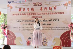 วันที่ 13 กุมภาพันธ์ 2569 หลักสูตรภาษาจีน คณะศิลปศาสตร์ ร่วมกับสถาบันขงจื๊อ มหาวิทยาลัยสงขลานครินทร์ ร่วมจัดกิจกรรม “อาชานำชัย สดใสรับศักราช 骏马呈瑞,喜迎新岁” ณ บริเวณลานชั้น 1 อาคารบริหาร คณะศิลปศาสตร์ เพื่อส่งเสริมการเรียนรู้ด้านภาษาและวัฒนธรรมจีนแก่คณาจารย์ บุคลากร และนักศึกษา