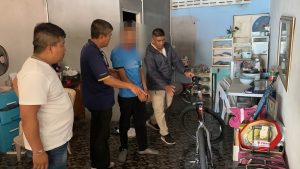 วันนี้ (28 มิ.ย.67) ตำรวจชุดปราบปรามโจรกรรมรถ สภ.หาดใหญ่ จ.สงขลา นำโดย พ.ต.ต.ธีรพงศ์ วิชิต สว.สส.สภ.หาดใหญ่ และ ร.ต.อ.อานุสิทธิ์ เนียมแกล้ว รอง สวป.สภ.หาดใหญ่ หัวหน้าชุดปราบปรามโจรกรรมรถ สภ.หาดใหญ่ นำกำลังเข้าจับกุมนายชนัญวิทย์ หรือเบิร์ด อายุ 34 ปีหนุ่มร้านคาร์แคร์แห่งหนึ่งซึ่งเป็นโจรขโมยรถในเมืองหาดใหญ่ทั้งรถจักรยานยนต์และรถจักรยาน