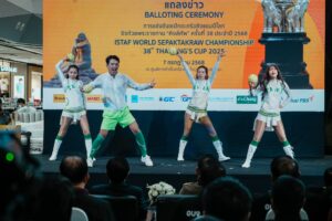 “นายกแป้น” นายณรงค์พร ณ พัทลุง นายกเทศมนตรีนครหาดใหญ่ นายเจตสกุล เพชรสกุล รองนายกเทศมนตรีนครหาดใหญ่ (รองปุ๋ย) เข้าร่วมการแถลงข่าวและจับฉลากแบ่งสาย การแข่งขันเซปักตะกร้อชิงแชมป์โลก ชิงถ้วยพระราชทาน “คิงส์คัพ” ครั้งที่ 38 โดยมี 20 ชาติตอบรับเข้าร่วมแข่งขัน ระหว่างวันที่ 22-27 กรกฎาคม 2568 ณ ศูนย์การค้าเซนทรัลหาดใหญ่