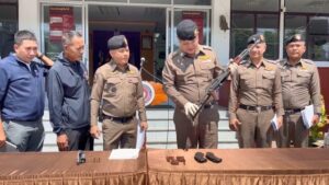 ตำรวจภูธรจังหวัดสงขลาแถลงข่าวรวบมือยิงอาก้ากว่า 30 นัด ถล่มร้านขายของชำ-ขายน้ำกระท่อม เมืองสงขลา