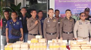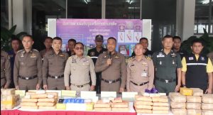 วันนี้ (12 ก.ค. 67) เวลา 15.00 น. พลตำรวจตรี นิตินัย หลังยาหน่าย รองผู้บัญชาการตำรวจภูธร ภาค 9 พร้อมด้วย นายเศวต เพชรนุ้ย รองผู้ว่าราชการจังหวัดสงขลา พลตำรวจตรี เชาวลิต เลี้ยงสุพงศ์ ผู้บังคับการตำรวจภูธรจังหวัดสงขลา, พันตำรวจเอก พิชัย กิระวานิช รองผู้บังคับการตำรวจภูธรจังหวัดสงขลา, ผู้แทนจากทัพเรือภาคที่ 2, สำนักงานป้องกันและปราบปรามยาเสพติด ภาค 9, กองกำกับการตำรวจตระเวนชายแดนที่ 43 และหน่วยงานที่เกี่ยวข้อง ร่วมแถลงข่าวตรวจยึดยาไอซ์ จำนวน 400 กรัม และยาบ้า 1,269,000 เม็ด รวมมูลค่ามากกว่า 30,000,000 บาท