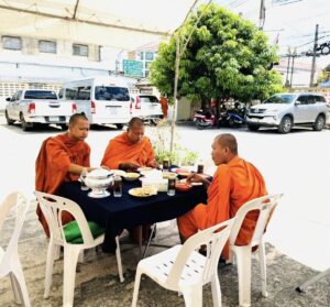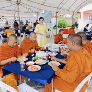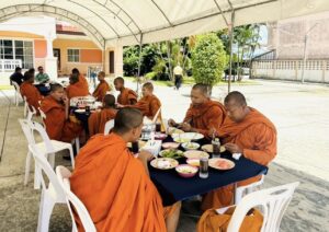 โดยมีพระภิกษุสงฆ์ สามเณรจากวัดต่าง ๆ ที่ร่วมขบวนเรือพระ เข้ารับถวายภัตตาหารเพล นับเป็นอีกหนึ่งกิจกรรมสำคัญของงานประเพณีลากพระ ที่สะท้อนให้เห็นถึงพลังแห่งความร่วมมือของทุกภาคส่วน