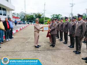 วันที่ 17 ตุลาคม 2568  นายทวีศักดิ์ ทวีรัตน์ นายกเทศมนตรีเมืองคอหงส์ มอบหมายให้  นายนที เรณุมาศ รองนายกเทศมนตรีเมืองคอหงส์เข้าร่วมรับโล่ประกาศเกียรติคุณ เนื่องในวันตำรวจ ประจำปี 2568 เพื่อแสดงถึงหน่วยงานที่ช่วยเหลือ ทำคุณประโยชน์ เสียสละ และสร้างคุณงามความดี ช่วยเหลือสนับสนุนกิจการงานตำรวจเสมอมา ณ สถานีตำรวจภูธรคอหงส์