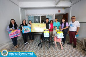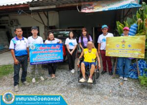 วันที่ 4 กันยายน 2568 เทศบาลเมืองคอหงส์ นายทวีศักดิ์ ทวีรัตน์ นายกเทศมนตรีเมืองคอหงส์ พร้อมด้วยสมาชิกสภาเทศบาล ประธานกลุ่มพัฒนาสตรีเทศบาลเมืองคอหงส์ เจ้าหน้าที่กองสวัสดิการสังคม กองสาธารณสุขและสิ่งแวดล้อม และเครือข่ายองค์กรด้านสังคมสงเคราะห์เทศบาลเมืองคอหงส์ นำโดยนายจรัส เปรมสุขใจ ลงพื้นที่มอบรถเข็นผู้ป่วย(Wheelchair) ผ้าอ้อมสำเร็จรูปผู้ใหญ่และสิ่งของจำเป็นอื่นๆ พร้อมให้การดูแลแนะนำเบื้องต้น ให้กำลังใจแก่ญาติผู้เฝ้าและผู้ป่วยฯ จำนวน 11 ราย ในเขตเทศบาลเมืองคอหงส์