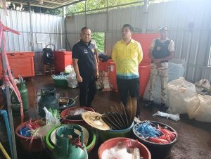 วันที่ 20 กันยายน 2567 เวลา 09.00 น นายเอก ยังอภัย ณ สงขลา นายอำเภอหาดใหญ่ /ผอ.ศป.ปส.อ.หาดใหญ่ พร้อมด้วยปลัดอำเภอหัวหน้าฝ่ายความมั่นคง ปลัดป้องกันจนท.ตร.สภ.ทุ่งลุง อ.หาดใหญ่ และกำลังสมาชิก อส.ร้อย อส.ที่ 4 อ.หาดใหญ่ ได้ร่วมกันจับกุมโรงงานต้มและบรรจุน้ำต้มกระท่อมรายใหญ่ พร้อมด้วยผู้ต้องหาจำนวน 5 ราย ได้ของกลางเป็นจำนวนมาก ได้แก่