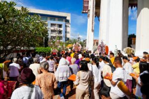 (11 ต.ค. 68) นายกแป้น มอบหมาย ดร.กิตติ เรืองเริงกุลฤทธิ์ ปลัดเทศบาลนครหาดใหญ่ พร้อมด้วย หัวหน้าส่วนราชการ เจ้าหน้าที่ และประชาชนทั่วไป ร่วมงานทอดกฐินสามัคคี ประจำปี 2568 โดยทางวัดจัดให้มีการทอดกฐินประจำปี เพื่อบูรณะปฏิสังขรณ์ ปรับปรุง/ก่อสร้างอาคารเสนาสนะ ปรับภูมิทัศน์ในวัดที่ทรุดโทรมเสื่อมสลายไปตามกาลเวลา เพื่อให้พระภิกษุ-สามเณร และประชาชนผู้ฝักใฝ่ในสัมมาปฏิบัติ ตลอดถึงการจัดกิจกรรมภายในวัดให้เป็นไปด้วยความราบรื่นสะดวกและเรียบร้อย วัดมหัตตมังคลาราม (วัดหาดใหญ่ใน)