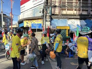 ทีมปั่นจักรยานกินลมชมวิวเยี่ยมชมและอุดหนุนสินค้าของพ่อค้าแม่ค้าตลาดสายเตราะ