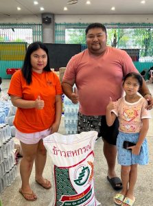คุณบุญโชค สุริยาวรกุล และครอบครัว คุณศรัทธา รุจิพัชรกุล น.ส.ธาริต้า สุริยาวรกุล และครอบครัว คุณสถาพร ตระกูลไพบูลย์กิจ และครอบครัว บริจาคข้าวสาร 50 ถุง น้ำดื่ม200 แพค