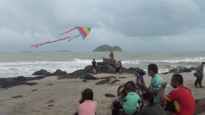 นทท.ชาวไทยและมาเลเซียยังเดินทางชื่นชมชายหาดสมิหลาแม้คลื่นลมแรง 2-3 เมตรกระหน่ำอย่างหนัก