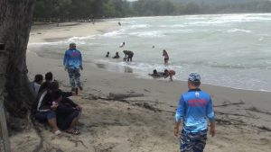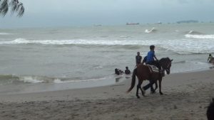 นทท.ชาวไทยและมาเลเซียยังเดินทางชื่นชมชายหาดสมิหลาแม้คลื่นลมแรง 2-3 เมตรกระหน่ำอย่างหนัก