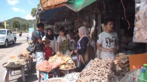 นางหวันย๊ะ สันกาบู แม่ค้าขายสินค้าสัตว์น้ำตากแห้ง บอกว่า ในปีนี้สินค้าขายดีกว่าทุกปีที่ผ่านมา ยอดขายเพิ่มขึ้นหลายเท่าตัว โดยเฉพาะ ปลาหมึกตากแห้ง ปลาแดดเดียว กุ้งแห้ง ปลาแห้ง มีนักท่องเที่ยวและประชาชนมาหาซื้อไปเป็นของฝากกันเป็นจำนวนมาก เพราะเมื่อมาเที่ยวจังหวัดสงขลาแล้วทุกคนมักจะมุ่งมาหาของฝากที่นี่ เพราะได้เดินทางมากินอาหารที่เกาะยอกินปลากะพงสดๆแล้ว ก็แวะมาซื้อของฝากจากเกาะยอติดมือไปด้วยเพราะสินค้าของเรามีคุณภาพเชื่อถือได้แถมราคาไม่แพงอย่างที่คิด