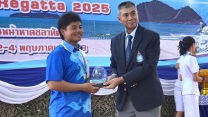 นายกสมาคมกีฬาแข่งเรือใบแห่งประเทศไทย ในพระบรมราชูปถัมภ์ ปิดการแข่งขันกีฬาเรือใบสงขลารีกัตต้า ครั้งที่ 3 และมอบรางวัลให้กับผู้ชนะการแข่งขัน ทั้งเรือใบแบบ Optimist และแบบเลเซอร์