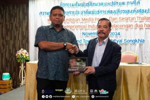เมื่อเวลา 16.00 น.วันที่ 21 พฤศจิกายน 2567 ที่ห้องประชุมชั้น 3 โรงแรมบีพีแกรนด์ทาวเวอร์ อ.หาดใหญ่ จ.สงขลา นายไชยยงค์ มณีรุ่งสกุล วุฒิสมาชิกรัฐสภา และ นายกสมาคมนักหนังสือพิมพ์ภูมิภาคแห่งประเทศไทย นายกสมาคมหนังสือพิมพ์ภาคใต้แห่งประเทศไทย นายอนงค์ วงศ์ช่วย อุปนายกสมาคมหนังสือพิมพ์ภาคใต้ ฯ นายตูแว มือรีงิง กรรมการฝ่ายต่างประเทศ สมาคมนักหนังสือพิมพ์ภาคใต้ฯ