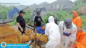 นายกหนอนลงพื้นที่อย่างใกล้ชิด เร่งจัดการการระบายน้ำ นำเจ้าหน้าที่และเครื่องสูบน้ำ เร่งระบายน้ำในพื้นที่ชุมชนบ้านคลองเปล