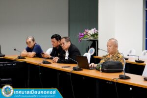 วันที่ 16 กุมภาพันธ์ 2569  นายทวีศักดิ์ ทวีรัตน์ นายกเทศมนตรีเมืองคอหงส์ ให้การต้อนรับและร่วมประชุมกับ รศ.ดร.เสรี ศุภราทิตย์ ผู้อำนวยการศูนย์การเปลี่ยนแปลงภูมิอากาศและภัยพิบัติ ม.รังสิต และรองประธานมูลนิธิสภาเตือนภัยพิบัติแห่งชาติ และลงสำรวจพื้นที่ที่ประสบปัญหาน้ำท่วม เพื่อหาแนวทางแก้ปัญหาในระยะสั้น ระยะกลาง และระยะยาว รวมถึงการวางระบบการเตือนภัยในเขตพื้นที่เทศบาลเมืองคอหงส์