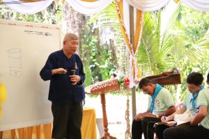 โอกาสนี้ นายอำเภอสทิงพระ และคณะ ได้ร่วมมอบพันธุ์สัตว์น้ำ (ปลานิลแดง) จำนวน 2,000 ตัว เพื่อปล่อยลงบ่อน้ำในพื้นที่ต้นแบบ พร้อมมอบปลาทูน่า จำนวน 2 ตัว โดยสำนักงานประมงจังหวัดสงขลา เพื่อใช้เป็นวัตถุดิบสนับสนุนอาหารพระราชทานให้แก่ผู้เข้าร่วมการอบรมในครั้งนี้ด้วย