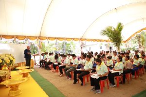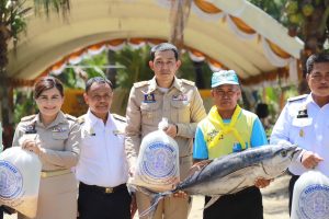 โอกาสนี้ นายอำเภอสทิงพระ และคณะ ได้ร่วมมอบพันธุ์สัตว์น้ำ (ปลานิลแดง) จำนวน 2,000 ตัว เพื่อปล่อยลงบ่อน้ำในพื้นที่ต้นแบบ พร้อมมอบปลาทูน่า จำนวน 2 ตัว โดยสำนักงานประมงจังหวัดสงขลา เพื่อใช้เป็นวัตถุดิบสนับสนุนอาหารพระราชทานให้แก่ผู้เข้าร่วมการอบรมในครั้งนี้ด้วย