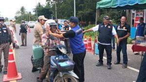 วันที่ 31/12/2568 เวลา 11.00 น. นายเอกชัย แก้วรัตนะ นายอำเภอหาดใหญ่ พร้อมด้วยนายธีรเดช จันมณี ปลัดอำเภอ หัวหน้าฝ่ายความมั่นคง และนายณรงค์กร สุวรรณะ จ่ากองร้อยฯ ตรวจเยี่ยมด่าน 7 วันอันตราย ณ จุดตรวจชุดรักษาความปลอดภัยหมู่บ้าน ม.7 บ้านทุ่งปรือ ต.พะตง (ถนนสาย ทุ่งปรือ – จะนะ) โดยมีกำนัน ผญบ.ฯลฯ , ชรบ.,อสม.,ตำรวจชุมชน สภ.ทุ่งลุง และ อปพร. ร่วมปฏิบัติหน้าที่ พร้อมมอบหมวกกันน๊อค เพื่อความปลอดภัย แก่ผู้สัญจรไป-มา อำเภอหาดใหญ่ห่วงใยทุกคน