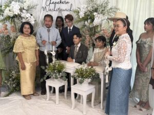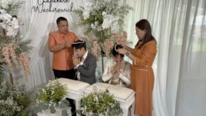 ในโอกาสนี้ นายอำเภอหาดใหญ่ เป็นผู้รดน้ำสังข์และจดทะเบียนสมรสให้แก่คู่บ่าวสาว พร้อมกล่าวอวยพรและให้ข้อคิดแนวทางการใช้ชีวิตคู่ด้วยความเข้าใจ การเคารพซึ่งกันและกัน และการประคับประคองกันทั้งในยามสุขและยามทุกข์ เพื่อสร้างครอบครัวที่อบอุ่นและมั่นคง อันเป็นสิริมงคลแก่คู่บ่าวสาว