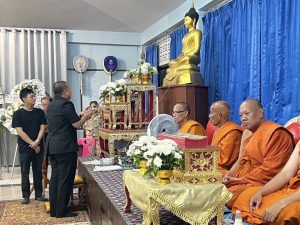วันที่ 13 พฤษภาคม 2568 เวลา 18.30 น. นายเอก ยังอภัย ณ สงขลา นายอำเภอหาดใหญ่ เป็นประธานสวดพระอภิธรรมศพ คุณพ่อเชิ่ม กิตติยามาต อายุ 92 ปี บิดาภรรยาของอส.จรินทร์ กริตยกวินวงศ์ พร้อมด้วยนางมุกดา ยังอภัย ณ สงขลา ประธานแม่บ้านมหาดไทยอำเภอหาดใหญ่ โดยมีคณะสงฆ์ นางสาวณัฐกานต์ สายน้อย นายอำเภอคลองหอยโข่ง นายธีรเดช จันมณี ปลัดอำเภอ หัวหน้าฝ่ายความมั่นคง นายกิตติพงศ์ ชุมมิ่ง ปลัดอำเภอ (งานป้องกัน) ผู้บริหารองค์กรปกครองส่วนท้องถิ่น ผู้นำท้องที่ ญาติพี่น้อง และแขกผู้มีเกียรติ เข้าร่วมพิธีฯ ณ ณ ศาลาเอนกประสงค์ วัดเขาแก้วตำบลเขารูปช้าง อำเภอเมืองสงขลา จังหวัดสงขลา