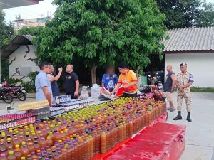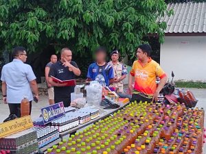 วันที่ 18 มิ.ย.67 เวลา 17.30 น. ภายใต้การอำนวยการของ นายเอก ยังอภัย ณ สงขลา นายอำเภอหาดใหญ่/ผู้อำนวยการศูนย์ป้องกันและปราบปรามยาเสพติดอำเภอหาดใหญ่ นางสาวณัฐกานต์ สายน้อย ปลัดอำเภอหัวหน้ากลุ่มงานบริหารงานปกครอง ได้สั่งการให้นายธีรเดช จันมณี ปลัดอำเภอ หัวหน้าฝ่ายความมั่นคง นายจรูญวิทย์ ภักภิรมย์ ปลัดอำเภอความมั่นคง นายณรงค์กร สุวรรณะ จ่ากองร้อยฯ พร้อมด้วยสมาชิก อส.อ.หาดใหญ่ ที่ 4 ลงพื้นที่ตรวจสอบร้านร้านวัยรุ่นสี่แยก ถนนคลองเตย-คลองเปล ตำบลคอหงส์ อำเภอหาดใหญ่จังหวัดสงขลา พร้อมของ 14 รายการประกอบด้วย รถยนต์ TOYOTA HILUX VIGO ตอนเดียว สีแดง , รถจักรยานยนต์ พ่วงข้างHONDA เวฟ 110 i สีแดง-ดำ , ยาแก้ไอ ยี่ห้อต่างๆ จำนวน 1,054 ขวด ,น้ำพืชกระท่อม ขนาด 1,500 มล. จำนวน 1 ขวด , น้ำพืชกระท่อม ขนาด 830 มล. จำนวน 313 ขวด , น้ำพืชกระท่อมผสมยาแก้ไอ ขนาด 1,500 มล. จำนวน 288 ขวด , น้ำพืชกระท่อมผสมยาแก้ไอ ขนาด 830 มล. จำนวน 266 ขวด , ใบพืชกระท่อม 33 กก. , บุหรี่ต่างประเทศ 100 ซอง , กัญชา (ช่อดอกกัญชา) 120 กรัม , กัญชา (อัดแท่ง) แบบสี่เหลี่ยมขนาดใหญ่ จำนวน 7 ถุง จำนวน 4 กก. , กัญชา (อัดแท่ง) แบบสี่เหลี่ยมขนาดเล็ก จำนวน 57 ถุง จำนวน 1.3 กก. , กัญชา (อัดแท่ง) แบบกลมขนาดเล็ก จำนวน 121 ถุง จำนวน 2.2 กก. , กัญชา (อัดแท่ง) จำนวน 6 ถุง เงินสด 50,541 บาท และรายการอื่นๆ โดยแจ้งข้อกล่าวหา ดังนี้
