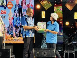 วันที่ 10 ตุลาคม 2568 เวลา 20.00 น. ณ เวทีกลางบริเวณหน้าที่ว่าการอำเภอหาดใหญ่ จังหวัดสงขลา นายเอก ยังอภัย ณ สงขลา นายอำเภอหาดใหญ่ มอบความสุขให้แก่ประชาชนและนักท่องเที่ยวที่เข้าร่วมงานประเพณีลากพระ อำเภอหาดใหญ่ ครั้งที่ 1 ประจำปี 2568 โดยร่วมจับฉลากหางบัตรแจกรางวัลมากมาย อาทิ เครื่องใช้ไฟฟ้า รถจักรยาน พัดลม และของรางวัลอื่น ๆ อีกหลากหลายรายการ เพื่อคืนความสุขและสร้างรอยยิ้มให้แก่ผู้เข้าร่วมงานอย่างทั่วถึง