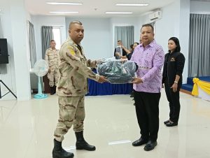 วันที่ 14 พฤษภาคม 2568 เวลา 09.30 น. นายเอก ยังอภัย ณ สงขลา นายอำเภอหาดใหญ่/ผู้บังคับกองร้อยอาสารักษาดินแดนอำเภอหาดใหญ่ที่ 4 เป็นประธานในพิธีมอบเสื้อให้แก่กำลังพลสมาชิกกองอาสารักษาดินแดนอำเภอหาดใหญ่ที่ 4 เพื่อเป็นขวัญและกำลังใจในการปฏิบัติหน้าที่ในการรักษาความสงบเรียบร้อยและความมั่นคงในพื้นที่ โดยมีนางสาวปิยพัชร์ วุ่นดำ ปลัดอำเภอ หัวหน้ากลุ่มงานบริหารงานปกครอง นายธีรเดช จันมณี ปลัดอำเภอ หัวหน้าฝ่ายความมั่นคง นายกิตติพงศ์ ชุมมิ่ง ปลัดอำเภองานป้องกัน นายจรูญวิทย์ ภักภิรมย์ ปลัดอำเภอฝ่ายความมั่นคง นายณรงค์กร สุวรรณะ เจ้าหน้าที่ปกครอง/จ่ากองร้อยฯ พร้อมด้วยกำลังพลสมาชิก อส. และบุคลากรที่เกี่ยวข้อง เข้าร่วมฯ ณ ห้องประชุมที่ว่าการอำเภอหาดใหญ่ ชั้น 3 อำเภอหาดใหญ่ จังหวัดสงขลา
