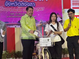 วันที่ 24 พฤษภาคม 2568 เวลา 19.00 น. นายเอก ยังอภัย ณ สงขลา นายอำเภอหาดใหญ่ พร้อมด้วยนางมุกดา ยังอภัย ณ สงขลา ประธานแม่บ้านมหาดไทยอำเภอหาดใหญ่ ร่วมกิจกรรมเปิดตลับและจ่ายรางวัลนาวากาชาดในงานประจำปีและงานกาชาดจังหวัดสงขลา ประจำปี 2568 โดยมีนายโชตินรินทร์ เกิดสม ผู้ว่าราชการจังหวัดสงขลา เป็นประธานฯ และมีนางปวีณ์ริศา เกิดสม นายกเหล่ากาชาดจังหวัดสงขลาคณะรองผู้ว่าราชการจังหวัดสงขลา หัวหน้าส่วนราชการ คณะกรรมการเหล่ากาชาดจังหวัด ตลอดจนผู้นำชุมชนและหน่วยงานในพื้นที่ ร่วมแจกรางวัลแกผู้โชคดีอย่างต่อเนื่องและมอบรางวัลแกผู้โชคดีที่ได้รับรางวัลจากร้านนาวากาชาด และแจกบัตรนาวากาชาดฟรีแก่ประชาชน ณ ร้านนาวากาชาด บริเวณสระบัว แหลมสนอ่อน ตำบลบ่อยาง อำเภอเมือง จังหวัดสงขลา