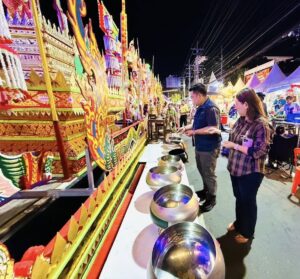 โดยนายอำเภอหาดใหญ่ ได้ร่วมทำบุญเรือพระจากวัดต่าง ๆ ที่มาร่วมงาน โดยเรือพระแต่ละลำได้รับการตกแต่งอย่างวิจิตรงดงาม แสดงให้เห็นถึงความศรัทธาและความร่วมแรงร่วมใจของชุมชนในแต่ละพื้นที่ พร้อมทั้งได้ร่วมตีโพนสร้างสีสันและความสนุกสนานในบรรยากาศของงาน ถือเป็นอีกหนึ่งกิจกรรมสำคัญที่สะท้อนถึงการมีส่วนร่วมของทุกภาคส่วนในการอนุรักษ์และส่งเสริมประเพณีลากพระให้คงอยู่สืบไป ทั้งนี้ นายอำเภอยังได้เยี่ยมชมร้านค้าชุมชนและผู้ประกอบการในงาน เพื่อให้กำลังใจและส่งเสริมเศรษฐกิจควบคู่ไปด้วย