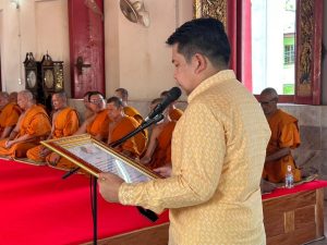 วันที่ 6 มิ.ย. 67 เวลา 15.00 น. นายเอก ยังอภัย ณ สงขลา นายอำเภอหาดใหญ่ อ่านตราตั้งฐานานุกรมและร่วมมุทิตาจิตยินดีแก่ พระอาจารย์ทวี ไออุ่นธรรม พระทวี อนาลโย ได้รับแต่งตั้งจาก พระเดชพระคุณท่านเจ้าประคุณสมเด็จพระมหาวชิรมังคลาจารย์ เจ้าคณะใหญ่หนใต้ ให้ดำรงตำแหน่ง ฐานานุกรมที่ พระครูสังฆกิจการี โดยมีพระครูมงคลถาวรกิจ เจ้าอาวาสวัดมหัตตมังคลาราม (วัดหาดใหญ่ใน) ประธานฝ่ายสงฆ์ พระครูภาวนากัลยาณคุณวิ.ดร. รองเจ้าอาวาสวัดมหัตตมังคลาราม (วัดหาดใหญ่ใน) คณะสงฆ์ และพุทธศาสนิกชน เข้าร่วมฯ ณ วัดมหัตตมังคลาราม (วัดหาดใหญ่ใน) ตำบลหาดใหญ่ อำเภอหาดใหญ่ จังหวัดสงขลา