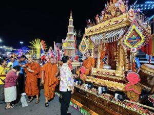 วันที่ 10 ตุลาคม 2568 เวลา 19.30 น. นายเอก ยังอภัย ณ สงขลา นายอำเภอหาดใหญ่ ลงพื้นที่ เยี่ยมชมเรือพระของวัดต่าง ๆ ที่เข้าร่วมจัดแสดงในงานประเพณีลากพระ อำเภอหาดใหญ่ ครั้งที่ 1 ประจำปี 2568 โดยมี พระครูภาวนากัลยาณคุณ วิ.ดร. รองเจ้าอาวาสวัดมหัตตมังคลาราม (วัดหาดใหญ่ใน) นางมุกดา ยังอภัย ณ สงขลา ประธานแม่บ้านมหาดไทยอำเภอหาดใหญ่ นางสาวปิยพัชร์ วุ่นดำ ปลัดอำเภอหัวหน้ากลุ่มงานบริหารงานปกครอง ปลัดอำเภอที่เกี่ยวข้อง นายอดิศักดิ์ ศรีมณี นายกเทศมนตรีเมืองคลองแห และเจ้าหน้าที่ที่เกี่ยวข้อง ร่วมเยี่ยมชม ณ บริเวณโดยรอบที่ว่าการอำเภอหาดใหญ่ จังหวัดสงขลา