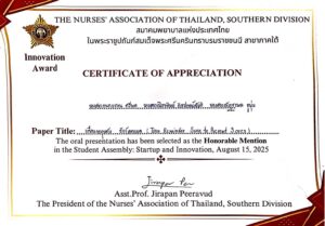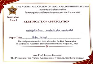 นิสิตคณะพยาบาลศาสตร์ มหาวิทยาลัยทักษิณ คว้ารางวัล Innovation Award