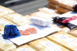 โดยสำนักงานตำรวจแห่งชาติ ได้บูรณาการความร่วมมือระหว่างกองทัพบก กองทัพเรือ และสำนักงานคณะกรรมการป้องกันและปราบปรามยาเสพติด ได้ร่วมกันวางแผนจับกุมกลุ่มผู้ลักลอบค้ายาเสพติด จนสามารถจับกุม นายสยมภู (เกตุ) ติบุญ อายุ 35 ปี และ นายวิโรจน์ (แบงค์) ทองดี อายุ 24 ปี ได้พร้อมของกลาง ได้แก่ เฮโรอีนอัดแท่ง 596 แท่ง น้ำหนักรวม 208.6 กิโลกรัม มูลค่าประมาณ 89.4 ล้านบาท, ยาบ้า 2,741,000 เม็ด มูลค่าประมาณ 28 ล้านบาท, โทรศัพท์มือถือ 4 เครื่อง, รถยนต์เก๋ง โตโยต้า โคโรลล่า อัลติส สีบรอนซ์เงิน ทะเบียน ขง 8928 สงขลา และรถจักรยานยนต์ฮอนด้าเวฟ I 125 ไม่มีแผ่นป้ายทะเบียน