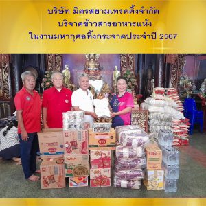 วันที่ 29 กรกฎาคม 2567 บริษัท มิตรสยามเทรดดิ้ง จำกัด บริจาคข้าวสาร-อาหารแห้ง และน้ำดื่ม สำหรับงานมหากุศลทิ้งกระจาดประจำปี 2567 ของ มูลนิธิมิตรภาพสามัคคี(ท่งเซียเซี่ยงตึ๊ง) หาดใหญ่ โดยมีคุณกิตติชัย ธรรมศิริพงษ์ รองประธานมูลนิธิฯ ,คุณวิเชียร เดชธีรชัย หัวหน้าบรรเทาสาธารณภัย-กู้ภัย, คุณกังวาฬ วรสมรรถกุล หัวหน้าปฏิคม เป็นตัวแทนรับมอบ