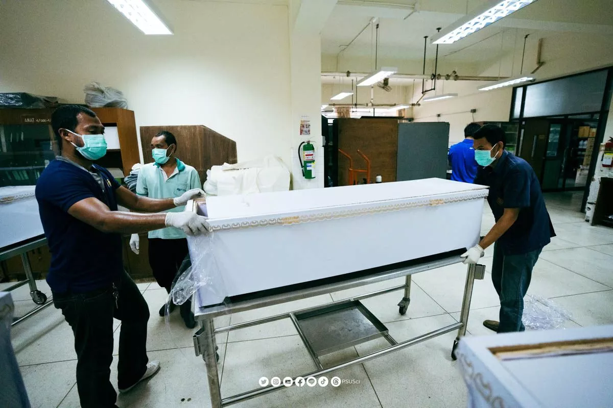 บุคลากรคณะวิทยาศาสตร์ ม.อ. ทำการบรรจุร่างอาจารย์ใหญ่เข้าโลงศพ เตรียมพร้อมพิธีพระราชทานเพลิงศพ (เป็นกรณีพิเศษ) ประจำปี 2567