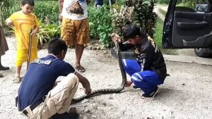 หลังจากที่ทีมอสรพิษวิทยาภาคใต้ได้รับการประสาน นายทวีศักดิ์ บุญเศษ ทีมอสรพิษวิทยาฯพร้อมด้วยนาย ไกรวิชญ์ อ่อนมนิล ทีมอสรพิษวิทยาฯและกู้ชีพ อบต.ฯจึงรีบนำอุปกรณ์ในการจับสัตว์เลื้อยคลานรุดเข้าตรวจสอบยังบ้านเลขที่ดังกล่าว เมื่อไปถึง จึงได้เข้าตรวจสอบที่บริเวณใต้ซิงค์ล้างจานพบว่าเป็นงูจงอางยักษ์เลื้อยเข้าไปซุกซ่อนในนั้น จึงนำอุปกรณ์ในการจับงูเข้าทำการจับงูจงอางยักษ์ทันที ในขณะเข้าจับงูจงอางชูคอสู้อย่างดุร้าย เจ้าหน้าที่ต้องใช้เวลาในการจับงูจงอางยักษ์นานประมาณ 5 นาที จึงสามารถจับงูจงอางยักษ์ไว้ได้ นำงูมาวัดได้ความยาวถึง 4 เมตร จึงจับใส่กระสอบปุ๋ยไว้