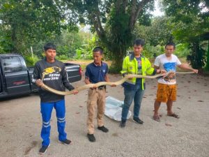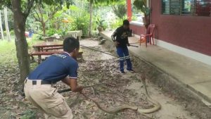 วันนี้ 21 มิถุนายน 2567 ทีมอสรพิษวิทยาภาคใต้ ,กู้ชีพ อบต.สะท้อน ,กู้ชีพ อบต.ท่าประดู่ และกู้ชีพ อบต.คลองทราย กำลังออกปฏิบัติหน้าที่อยู่ในพื้นที่ของ อ.นาทวี จ.สงขลา ก็ได้รับการประสานจากนายสนิท ชายแดง อายุ 50 ปี อยู่บ้านเลขที่ 66/1 ม.9 ต.ทับช้าง อ.นาทวี จ.สงขลา ว่ามีงูจงอาง มาอยู่ในบ้าน 2 ตัว ขอให้เจ้าหน้าที่ทีมอสรพิษวิทยาฯมาช่วยจับให้หน่อย