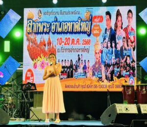 วันที่ 13 ตุลาคม 2568 เวลา 19.00 น. นายเอก ยังอภัย ณ สงขลา นายอำเภอหาดใหญ่ พร้อมด้วยนางมุกดา ยังอภัย ณ สงขลา ประธานแม่บ้านมหาดไทยอำเภอหาดใหญ่ รับชมและร่วมให้กำลังใจผู้เข้าประกวด “ไมค์ทองคำ เพลงลูกกรุงอมตะ” ในงานประเพณีลากพระ อำเภอหาดใหญ่ ครั้งที่ 1 ประจำปี 2568 ซึ่งจัดขึ้นอย่างยิ่งใหญ่ โดยมีนางสาวปิยพัชร์ วุ่นดำ ปลัดอำเภอหัวหน้ากลุ่มงานบริหารงานปกครอง ปลัดอำเภอที่เกี่ยวข้อง คณะกรรมการตัดสินการประกวด และประชาชนชาวอำเภอหาดใหญ่เข้าร่วมชมอย่างคับคั่ง บรรยากาศภายในงานเต็มไปด้วยความสนุกสนานและเสียงดนตรีแห่งบทเพลงลูกกรุงอมตะที่ขับกล่อมผู้ชมตลอดค่ำคืน ณ เวทีกลางหน้าที่ว่าการอำเภอหาดใหญ่ จังหวัดสงขลา