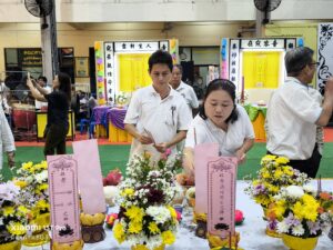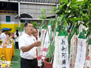 วันที่ 21 สิงหาคม พ.ศ.2568 เวลา 19.00 น. คุณอรุณชัย ศิริมหาชัย ประธานกรรมการบริหารมูลนิธิฯ รองประธานมูลนิธิฯ คณะกรรมการมูลนิธิฯ ร่วมเป็นประธาน ในพิธีกงเต็ก (ชึงกิมซัว โอยตี้ โอยถะ) นำพาดวงวิญญาณเวียนรอบสระสัตบงกชและเจดีย์ทอง งานมหากุศลทิ้งกระจาดประจำปี 2568 โดยมีคณะศาสนพิธี คณะเก็งจู ของมูลนิธิฯเป็นผู้ประะกอบพิธี ดังกล่าว นอกจากนั้นยังมีสาธุชนทั่วไป เข้าร่วมในพิธีดังกล่าวอย่างพร้อมเพรียง