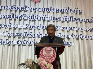 โดยมีนายเอก ยังอภัย ณ สงขลา นายอำเภอหาดใหญ่ หัวหน้าส่วนราชการ ผู้เข้าร่วมประชุมโครงการเสริมสร้างความพร้อมแก่ท้องถิ่น หลักสูตร “กระบวนการเสริมสร้างผู้นำนักประชาธิปไตยแบบมีส่วนร่วม” ครั้งที่ 4 /2568 ณ จังหวัดสงขลาสำนักงานเลขาธิการวุฒิสภา ให้ความสำคัญของประชาชน ที่จะต้องมีความรู้และเข้าใจในระบอบประชาธิปไตยและการมีส่วนร่วมทางการเมืองอย่างถูกต้อง เสริมสร้างบทบาทความเป็นผู้นำนักประชาธิปไตยแก่ผู้ที่เข้าร่วมอบรมเพื่อเป็นการเสริมสร้างความรู้และทัศนคติที่ดีแก่ผู้นำท้องถิ่น และประชาชนทั่วไปได้เข้าใจอย่างถูกต้อง