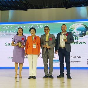 พล.ต.ท.สาคร ทองมุณี นายกเทศมนตรีนครหาดใหญ่ มอบหมายให้ รศ.ดร.วิชัย กาญจนสุวรรณ รองนายกเทศมนตรี นายสมพร เหมืองทอง นักวิชาการสุขาภิบาลชำนาญการ และ นางสาวเสาวภัคย์ ธรรมเสน่ห์ นักวิชาการสุขาภิบาลชำนาญการ ส่วนช่างสุขาภิบาล สำนักช่าง เข้าร่วมประชุม “2024 UNESCO GNLC ICHEON Sustainable Learning Cities Initiatives International Forum” ระหว่างวันที่ 11 – 12 กันยายน 2567 ณ เมือง Icheon ประเทศเกาหลีใต้ ภายในงานดังกล่าวได้มีการทำบันทึกข้อตกลงร่วมกัน ระหว่างเมือง Icheon กับเมืองหาดใหญ่ เพื่อส่งเสริมความร่วมมือระหว่างประเทศ และการทำงานที่เป็นประโยชน์ร่วมกันทั้ง 2 ฝ่าย เพื่อมุ่งสู่เมืองแห่งการเรียนรู้ที่ยั่งยืน และในงานดังกล่าว รศ.ดรวิชัย กาญจนสุวรรณ ได้ร่วมบรรยายในช่วง Mayor Session ร่วมกับ คุณ Kim Kyung-Hee นายกเทศมนตรีเมือง Icheon คุณ Milena Paola Quirog นายกเทศมนตรี เมือง La Paz ประเทศเม๊กซิโก และ คุณ Mikhaii Krasnov นายกเทศมนตรีเมือง Tunja ประเทศโคลัมเบีย ทั้งนี้ รศ.ดรวิชัย กาญจนสุวรรณ ได้บรรยายเรื่อง Hatyai Green City ซึ่งได้รับเสียงชื่นชมจากนายกเทศมนตรีทั้ง 3 เมือง ที่เข้าร่วมบรรยาย และให้ความสนใจที่จะแลกเปลี่ยนเรียนรู้ โดยเฉพาะในด้านการจัดการคุณภาพอากาศ การดำเนินการด้านการลดก๊าซเรือนกระจก เป็นต้น