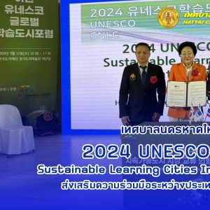 พล.ต.ท.สาคร ทองมุณี นายกเทศมนตรีนครหาดใหญ่ มอบหมายให้ รศ.ดร.วิชัย กาญจนสุวรรณ รองนายกเทศมนตรี นายสมพร เหมืองทอง นักวิชาการสุขาภิบาลชำนาญการ และ นางสาวเสาวภัคย์ ธรรมเสน่ห์ นักวิชาการสุขาภิบาลชำนาญการ ส่วนช่างสุขาภิบาล สำนักช่าง เข้าร่วมประชุม “2024 UNESCO GNLC ICHEON Sustainable Learning Cities Initiatives International Forum” ระหว่างวันที่ 11 – 12 กันยายน 2567 ณ เมือง Icheon ประเทศเกาหลีใต้ ภายในงานดังกล่าวได้มีการทำบันทึกข้อตกลงร่วมกัน ระหว่างเมือง Icheon กับเมืองหาดใหญ่ เพื่อส่งเสริมความร่วมมือระหว่างประเทศ และการทำงานที่เป็นประโยชน์ร่วมกันทั้ง 2 ฝ่าย เพื่อมุ่งสู่เมืองแห่งการเรียนรู้ที่ยั่งยืน และในงานดังกล่าว รศ.ดรวิชัย กาญจนสุวรรณ ได้ร่วมบรรยายในช่วง Mayor Session ร่วมกับ คุณ Kim Kyung-Hee นายกเทศมนตรีเมือง Icheon คุณ Milena Paola Quirog นายกเทศมนตรี เมือง La Paz ประเทศเม๊กซิโก และ คุณ Mikhaii Krasnov นายกเทศมนตรีเมือง Tunja ประเทศโคลัมเบีย ทั้งนี้ รศ.ดรวิชัย กาญจนสุวรรณ ได้บรรยายเรื่อง Hatyai Green City ซึ่งได้รับเสียงชื่นชมจากนายกเทศมนตรีทั้ง 3 เมือง ที่เข้าร่วมบรรยาย และให้ความสนใจที่จะแลกเปลี่ยนเรียนรู้ โดยเฉพาะในด้านการจัดการคุณภาพอากาศ การดำเนินการด้านการลดก๊าซเรือนกระจก เป็นต้น