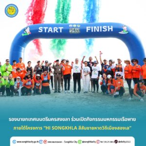 เช้าวันนี้ (7 มีนาคม 2569) ณ สวนประติมากรรมเฉลิมพระเกียรติ สมเด็จพระเทพฯ (บริเวณชายหาดสมิหลา) จังหวัดสงขลา นายวันชัย ปริญญาศิริ นายกเทศมนตรีนครสงขลา มอบหมายให้ นายสมชาย จันทรประทิน รองนายกเทศมนตรีนครสงขลา ร่วมเปิดกิจกรรมมหกรรมเรือพาย ภายใต้โครงการ “Hi Songkhla สีสันชายหาดวิถีเมืองสองเล” โดยมีนายชูชีพ ธรรมเพชร รองผู้ว่าราชการจังหวัดสงขลา เป็นประธานฯ พร้อมด้วย ผู้อำนวยการท่องเที่ยวและกีฬาจังหวัดสงขลา ประชาชน และนักท่องเที่ยว เข้าร่วมงานอย่างพร้อมเพรียง