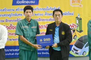 วันที่ 23 พ.ค. 68 นายชัยรัตน์ ฉัตรศุภกุล ผู้อำนวยการสถาบันพัฒนาฝีมือแรงงาน 12 สงขลา เป็นประธานปิดฝึกอบรมและมอบวุฒิบัตร โครงการสร้างาน สร้างอาชีพ รองรับระบบโลจิสติกส์ ในพื้นที่เขตพัฒนาเศรษฐกิจพิเศษ ประจำปีงบประมาณ 2568 (งบจังหวัดสงขลา) การฝึกยกระดับฝีมือ หลักสูตรการติดตั้งและทดสอบสถานีอัดประจุไฟฟ้า(30 ชั่วโมง) รุ่นที่ 2/2568 ฝึกระหว่างวันที่ 19-23 พฤษภาคม 2568 จำนวน 20 คน และมอบวุฒิบัตรแก่ผู้ผ่านการฝึก หลักสูตรการติดตั้งและทดสอบสถานีอัดประจุไฟฟ้า รุ่นที่1 จำนวน 20 คน และหลักสูตรการซ่อมบำรุงรถยนต์ไฟฟ้า รุ่นที่ 3 จำนวน 18 คน รวมจำนวน 58 คน โดยมี ผศ.สาวิตร์ ตัณฑนุช ผู้อำนวยการศูนย์พัฒนายานยนต์ไฟฟ้า มหาวิทยาลัยสงขลานครินทร์ กล่าวรายงาน รศ.ดร.ธีรยุทธ หลีวิจิตร รองคณบดีฝ่ายองค์กรสัมพันธ์และกิจการพิเศษ คณะวิศวกรรมศาสตร์ มหาวิทยาลัยสงขลานครินทร์ นายนัฐวุธ พิริยะจิตตะ ผู้ช่วยผู้ว่าการโครงการธุรกิจ การไฟฟ้าฝ่ายผลิตแห่งประเทศไทย และนายสายัณห์ ปานซัง ผู้ช่วยผู้ว่าการบริหารธุรกิจ การไฟฟ้าฝ่ายผลิตแห่งประเทศไทย ร่วมมอบวุฒิบัตร ณ ศูนย์พัฒนายานยนต์ไฟฟ้า มหาวิทยาลัยสงขลานครินทร์ ถนนปุณณกัณฑ์ ตำบลทุ่งใหญ่ อำเภอหาดใหญ่ จังหวัดสงขลา