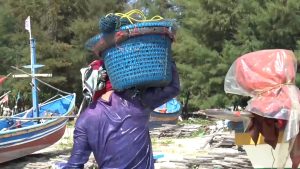 นายเฉด หมีดเจริญ ชาวประมงพื้นบ้านอวนปู กล่าวว่า วันนี้คลื่นลมกลางทะเล ยังเงียบสงบอยู่ยังไม่เป็นไร ที่อุตุประกาศเตือนวันนี้คลื่นแรงก็นิดหน่อย แต่วันนี้ยังไม่เป็น แต่ก็เริ่มแล้วเริ่มนิดๆสำหรับวันนี้การจับสัตว์น้ำได้น้อยโดยเฉพาะปูม้า เนื่องจากปูม้าจะชุกชุมในช่วงที่มีคลื่นลมแรง ตอนนี้ก็รอคลื่นอยู่ ถ้าไม่มีคลื่นก็จะไม่มีปู เพราะฉะนั้นต้องมีคลื่นจึงจะมีปู หลังคลื่นสงบก็จะได้บ้าง เนื่องจากการทำอวนปูต้องมีคลื่น ส่วนอวนอื่นๆเวลาคลื่นสงบก็ได้ แต่อวนปูต้องมีคลื่น วันนี้ออกไปเก็บปูตั้งแต่ตอนเช้าประมาณ 6:00 น.แล้ววางอวนทิ้งไว้ใหม่เผื่อทะเลจะได้เป็นคลื่นก็จะได้ปูมั่ง