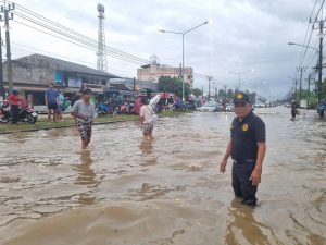 วันนี้ 19 พฤศจิกายน 2566 เวลา 07.00 น นายชัยวุฒิ บัวทอง นายอำเภอเมืองสงขลา พร้อมด้วยปลัดอำเภอ และฝ่ายปกครองท้องที่ ร่วมกับเทศบาลตำบลพะวงได้ลงพื้นที่ตรวจสถานการณ์น้ำท่วมถนน บริเวณหน้าปั๊ม ปตท.บ้านควนหิน หมู่ที่ 3 ตำบลพะวง อำเภอเมือง จังหวัดสงขลา ซึ่งขณะนี้เกิดน้ำท่วมถนนระบายไม่ทันทั้งสองฝั่ง ทำให้รถสัญจรไปมาไม่สะดวก นายอำเภอเมืองได้สั่งการให้ท้องถิ่นจัดเจ้าหน้าที่อำนวยความสะดวกเส้นทางให้กับรถที่สัญจรไปมาและประชาชนในพื้นที่แล้ว