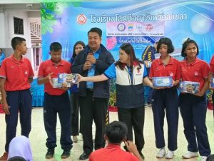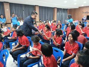 วันที่ 13 ธ.ค.67 เวลา 09.30 น. นายเอก ยังอภัย ณ สงขลา นายอำเภอหาดใหญ่ พร้อมด้วยนางมุกดา ยังอภัย ณ สงขลา ประธานแม่บ้านมหาดไทยอำเภอหาดใหญ่ พบปะเยี่ยมเยียนนักเรียนโรงเรียนโสตศึกษาจังหวัดสงขลา(ระดับชั้นประถมศึกษา) พร้อมแจกขนมซึ่งได้รับการสนับสนุนจากเหล่ากาชาดจังหวัดสงขลาให้กับเด็กๆ เพื่อเป็นขวัญและกำลังใจ โดยมีนางสาว นวินดาภา สาสุนีย์ ปลัดอำเภอผู้รับผิดชอบงานสำนักงานอำเภอ นางณัฐสุดา นาลอ ผู้อำนวยการโรงเรียนโสตศึกษาจังหวัดสงขลา คณะผู้บริหารโรงเรียนโสตศึกษาจังหวัดสงขลา คณะครู สมาชิกกองอาสารักษาดินแดนอำเภอหาดใหญ่ที่ 4 และนักเรียนโรงเรียนโสตศึกษาจังหวัดสงขลา(ระดับชั้นประถมศึกษา) เข้าร่วมฯ ณ โรงเรียนโสตศึกษาจังหวัดสงขลา ตำบลคอหงส์ อำเภอหาดใหญ่ จังหวัดสงขลา