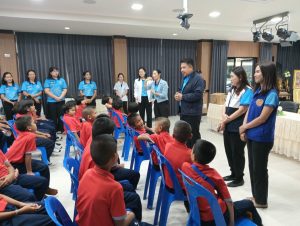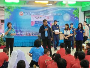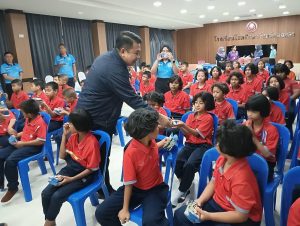 วันที่ 13 ธ.ค.67 เวลา 09.30 น. นายเอก ยังอภัย ณ สงขลา นายอำเภอหาดใหญ่ พร้อมด้วยนางมุกดา ยังอภัย ณ สงขลา ประธานแม่บ้านมหาดไทยอำเภอหาดใหญ่ พบปะเยี่ยมเยียนนักเรียนโรงเรียนโสตศึกษาจังหวัดสงขลา(ระดับชั้นประถมศึกษา) พร้อมแจกขนมซึ่งได้รับการสนับสนุนจากเหล่ากาชาดจังหวัดสงขลาให้กับเด็กๆ เพื่อเป็นขวัญและกำลังใจ โดยมีนางสาว นวินดาภา สาสุนีย์ ปลัดอำเภอผู้รับผิดชอบงานสำนักงานอำเภอ นางณัฐสุดา นาลอ ผู้อำนวยการโรงเรียนโสตศึกษาจังหวัดสงขลา คณะผู้บริหารโรงเรียนโสตศึกษาจังหวัดสงขลา คณะครู สมาชิกกองอาสารักษาดินแดนอำเภอหาดใหญ่ที่ 4 และนักเรียนโรงเรียนโสตศึกษาจังหวัดสงขลา(ระดับชั้นประถมศึกษา) เข้าร่วมฯ ณ โรงเรียนโสตศึกษาจังหวัดสงขลา ตำบลคอหงส์ อำเภอหาดใหญ่ จังหวัดสงขลา