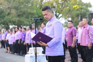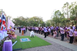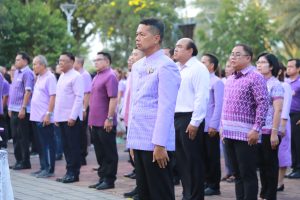 ช่วงเย็นวันนี้ (14 กุมภาพันธ์ 2567) ที่บริเวณลานหน้าเสาธง ศาลากลางจังหวัดสงขลา อำเภอเมือง จังหวัดสงขลา นายสมนึก พรหมเขียว ผู้ว่าราชการจังหวัดสงขลา พร้อมด้วย นางมณีรัตน์ พรหมเขียว ประธานแม่บ้านมหาดไทยจังหวัดสงขลา พร้อมด้วยคณะรองผู้ว่าราชการจังหวัดสงขลา ผู้บริหารองค์กรปกครองส่วนท้องถิ่น ข้าราชการ เจ้าหน้าที่ และพสกนิกรชาวจังหวัดสงขลา ที่พร้อมใจกันสวมใส่ชุดโทนสีม่วง เพื่อแสดงจุดยืนที่แน่วแน่ในการปกป้องและถวายกำลังใจแด่สมเด็จพระกนิษฐาธิราชเจ้า กรมสมเด็จพระเทพรัตนราชสุดา ฯ สยามบรมราชกุมารี ด้วยความจงรักภักดี และสำนึกในพระมหากรุณาธิคุณที่มีต่อปวงชนชาวไทย
