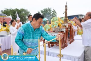 วันที่ 8 ตุลาคม 2568 นายทวีศักดิ์ ทวีรัตน์ นายกเทศมนตรีเมืองคอหงส์ ร่วมพิธีทำบุญตักบาตรเทโวโรหณะ ” เนื่องในวันออกพรรษา ประจำปีพุทธศักราช 2568 ณ ลานพระพุทธมงคลมหาราช เขาคอหงส์ อ.หาดใหญ่ โดยมี นายจิรวัตร์ มณีโชติ รองผู้ว่าราชการจังหวัดสงขลา เป็นประธานในพิธี และแขกผู้มีเกียรติ เจ้าหน้าที่ ทุกหน่วยงาน ประชาชน ฯลฯ เข้าร่วมพิธีในครั้งนี้